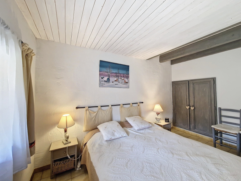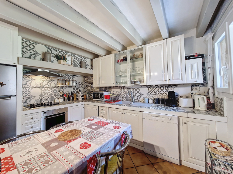 EQUIPMENT: Fridge-freezer, flat-screen TV, fireplace, dishwasher, washing machine, Senseo coffee maker, oven, kettle, microwave, toaster, gas hob with 2 burners and 2 electric burners, 1 Dyson vacuum cleaner, 1 Bosch vacuum cleaner, 1 hairdryer, 1 deep fryer, iron and ironing board, clothesline, stone BBQ, garden furniture (table + chairs + parasol + deckchairs).