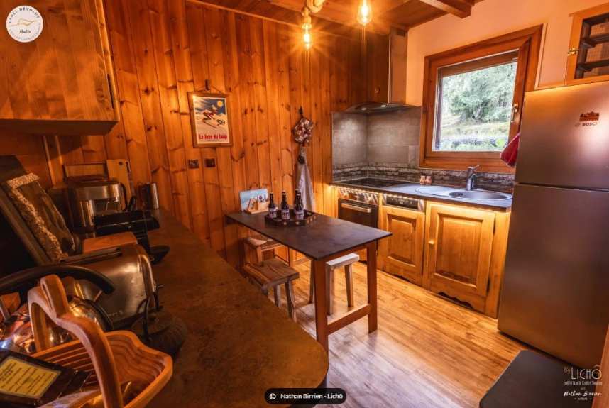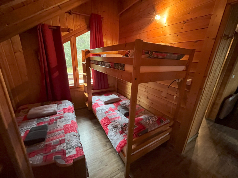The 80 m² chalet offers all the comforts you need. It comprises 3 bedrooms (1 double bed / 2 single beds / 1 single bed and 1 bunk bed), a mezzanine (sofa bed), 2 bathrooms, a fully-equipped kitchen, a living room, a large terrace overlooking a wooded area, a double entrance door with an airlock for storing your equipment. For those who want to travel light, a washing machine is also available.