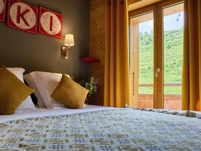 It's right in the heart of the action, with a terrace and balcony overlooking the slopes, lifts, ski school and Champ Giguet, where numerous events take place all year round. All of La Clusaz's shops, bars and restaurants are just a few minutes' walk away.