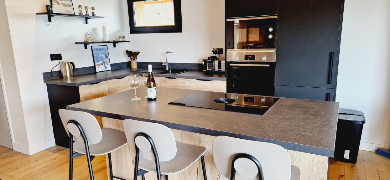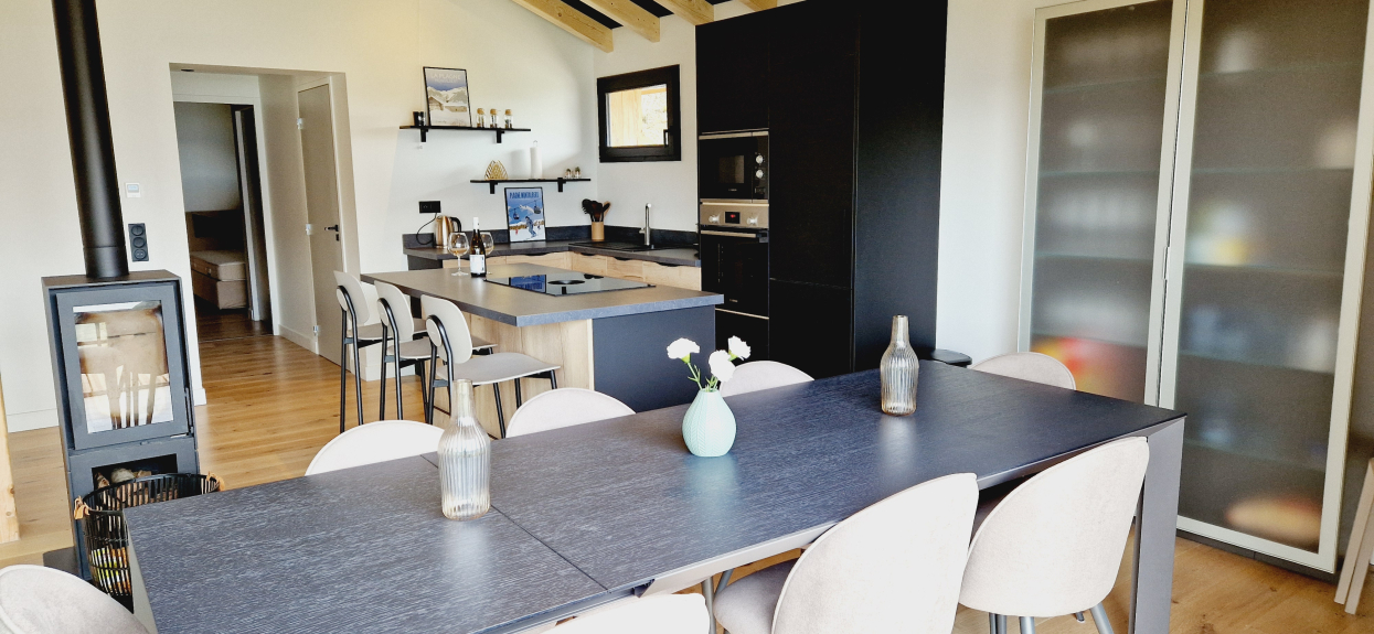 A very well equipped, comfortable and functional open kitchen with oven, refrigerator with freezer section, dishwasher, toaster, Nespresso coffee machine, microwave, fondue set, electric kettle, hotplates, etc. ..