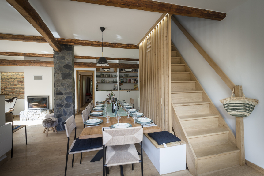 Nestling in the enchanting setting of the Alps, this former Savoyard farmhouse, completely renovated in 2024, is a perfect blend of traditional charm and modern comfort. Spread over three levels, the chalet offers generous living spaces with exceptional volume, creating a warm and friendly atmosphere.