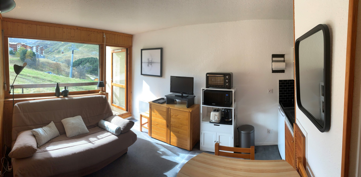 24m² apartment for 4 people. It has a south-facing balcony with an unobstructed view. This apartment has a private closed garage (N°441) and a private outside parking space (free placement).