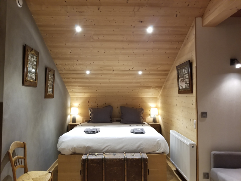 An unparalleled opportunity in the Chamonix valley, a brand-new chalet for rent, with a contemporary Walser-style design to recall the architectural and cultural history of Vallorcine, now a family village ski resort. The Walser chalet can accommodate 6 to 10 guests (2 bedrooms + a dormitory), so up to 12 people including 2 babies. Rent this new, comfortable chalet for family vacations in Vallorcine Mont Blanc.