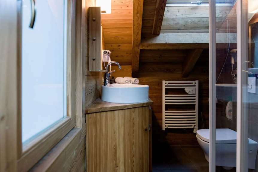 Le MAZOT is a magnificent "cabane": a small larch chalet, set on the terrace of the ANNAPURNA, offering the 6th bedroom with its own shower room, toilet, flat-screen TV, with a fantastic view of the slopes.