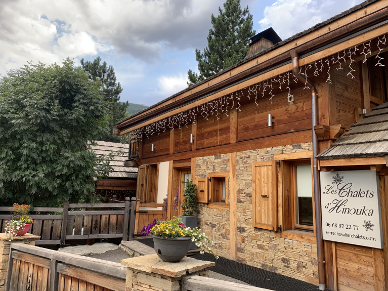 Part of the "CHALETS D'HINOUKA" family, L'ANNAPURNA and L'EVEREST are 2 larch wood chalets, connected on the inside by large sliding doors in the walls, located in SERRE CHEVALIER VALLEE, in the heart of CHANTEMERLE, 200 m from the ski lifts and all amenities: