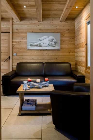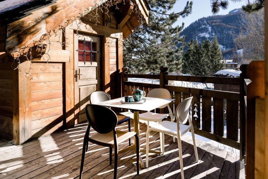 Le MAZOT is a magnificent "cabane": a small larch chalet, set on the terrace of the ANNAPURNA, offering the 6th bedroom with its own shower room, toilet, flat-screen TV, with a fantastic view of the slopes.