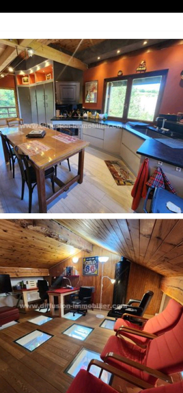 In the mezzanine, a bedroom and a lounge or games room. Heating: pellet stove, wood-burning fireplace and electric convector heaters.