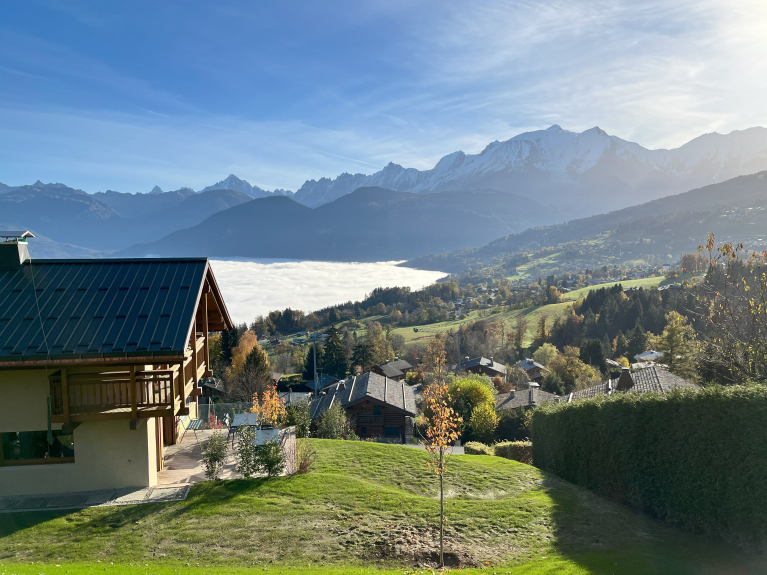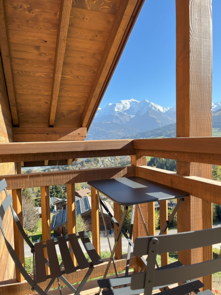 Magnificent 150 m² chalet newly built with quality materials and top-of-the-range features, offering breathtaking views of the Mont-Blanc massif, the Fiz mountain range and the entire valley.