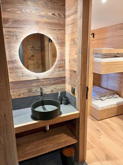 A heated garage equipped for storing ski equipment and a laundry room with washing machine and tumble dryer complete the facilities. For added comfort, the chalet is equipped with a heat pump and underfloor heating.