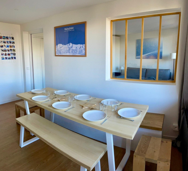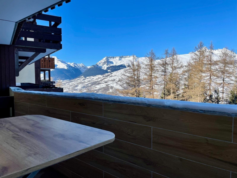 This 3-room apartment is ideally located in the resort: the ski slopes - and the ESF course departures - can be reached in 3 minutes on foot (and the return journey is on skis), while access to the village center of Les Coches and its shops is via a pedestrian path off the road, in less than 3 minutes.