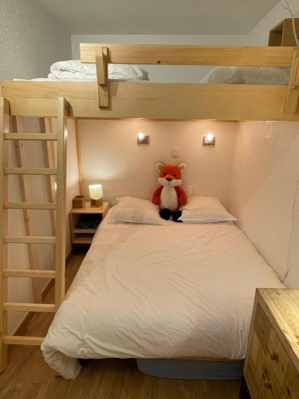 -a second bedroom with a double bed (140 x 190cm) and a mezzanine double bed (140 x 180cm);