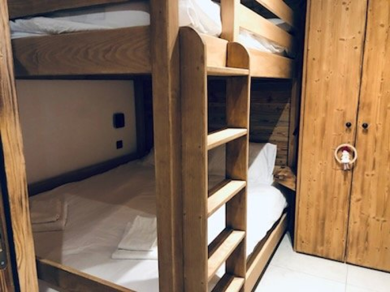 1 mountain corner, sleeping 6 in bunk beds: two 160*200 cm double bunk beds and two 90*190 cm bunk beds.