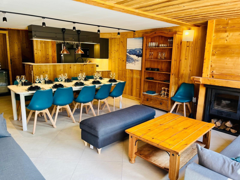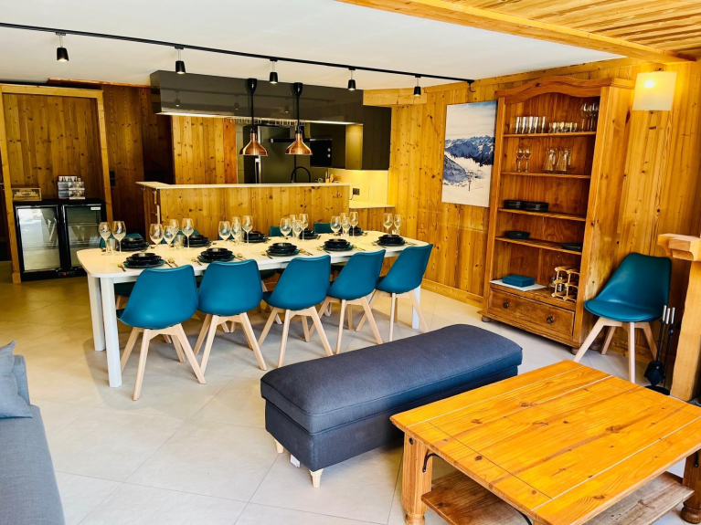 Chalet Gabrielle is a magnificent catered chalet in the heart of Les Bruyères, right next to the Bruyères 1 gondola, and can accommodate 10 to 12 guests.