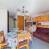Kitchen equipped with 2 hotplates, mini-oven, microwave, fridge, kettle, coffee maker and toaster.