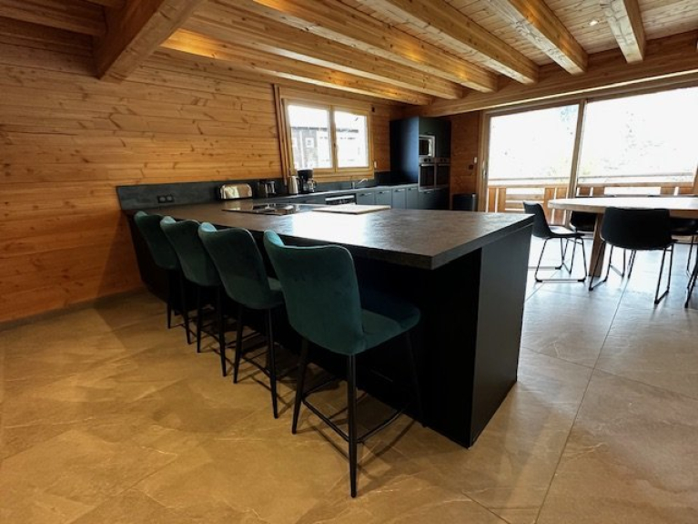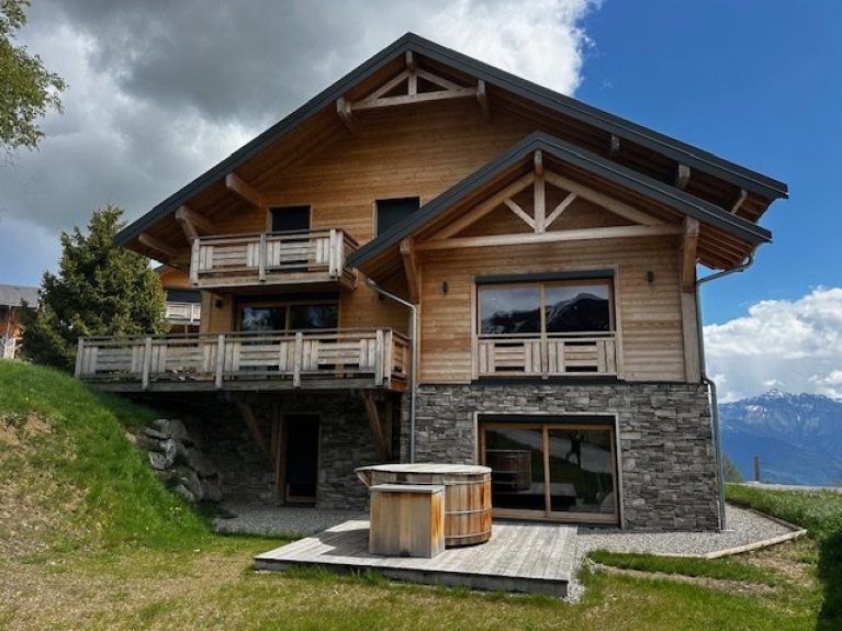 Chalet rental, 320m2 high standing, located at the foot of the slopes, departure and return by ski from the chalet. Shuttle service nearby.