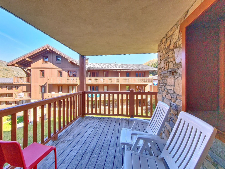 This residence, located at the entrance to the resort, captivates with its traditional Savoyard style. Come and discover its functional apartments, relaxation area with swimming pool, sauna, hammam, fitness room, ski store and free shuttle service to the resort center, 1km away.