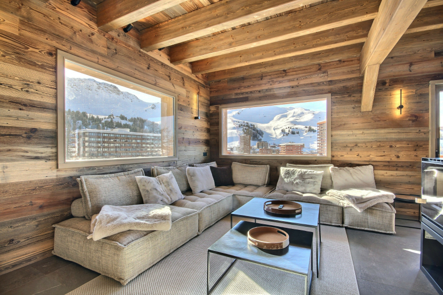 Very beautiful living space (around 70 m²) opening onto a large balcony and offering a superb view of the resort thanks to its large bay windows. It consists of: