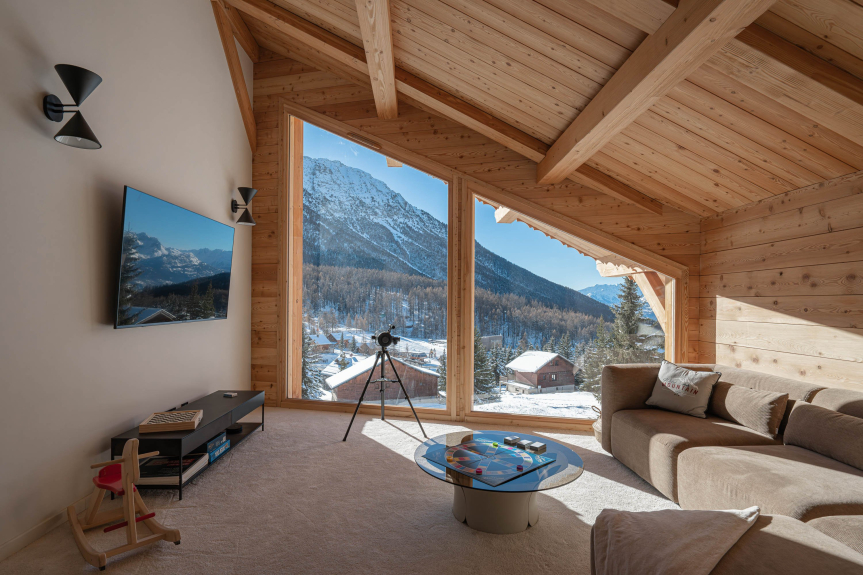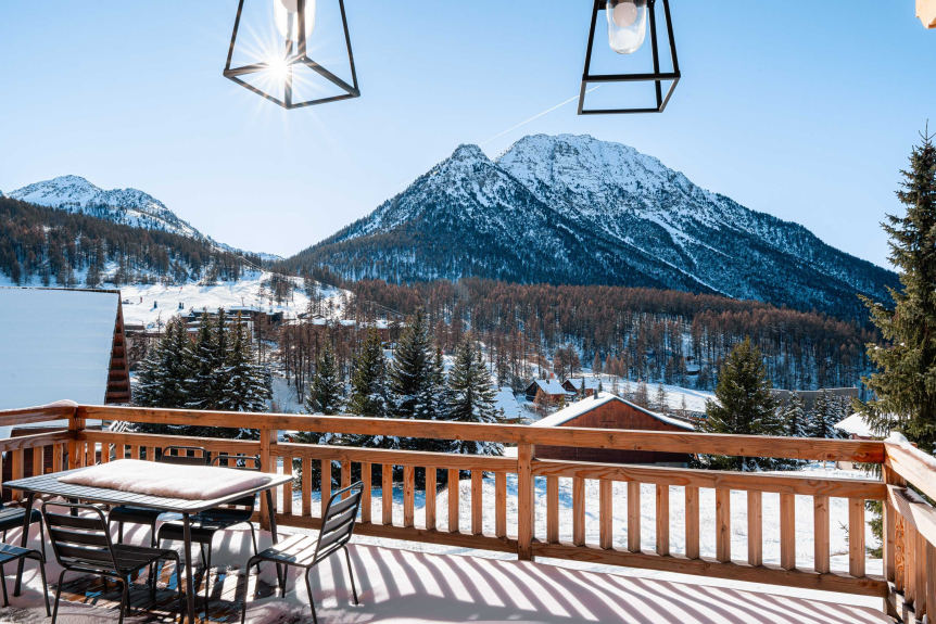 For rent in Montgenèvre 1860m: New, comfortable family chalet - sleeps 12 to 15 - breathtaking view of the Écrins - exceptional location.