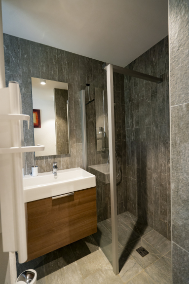 - Bedroom with bed 140x190 and private bathroom (shower) + television