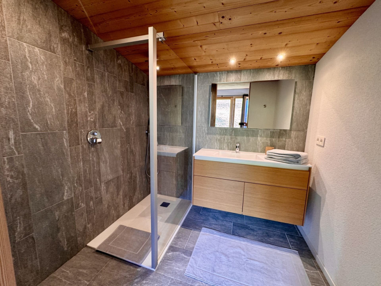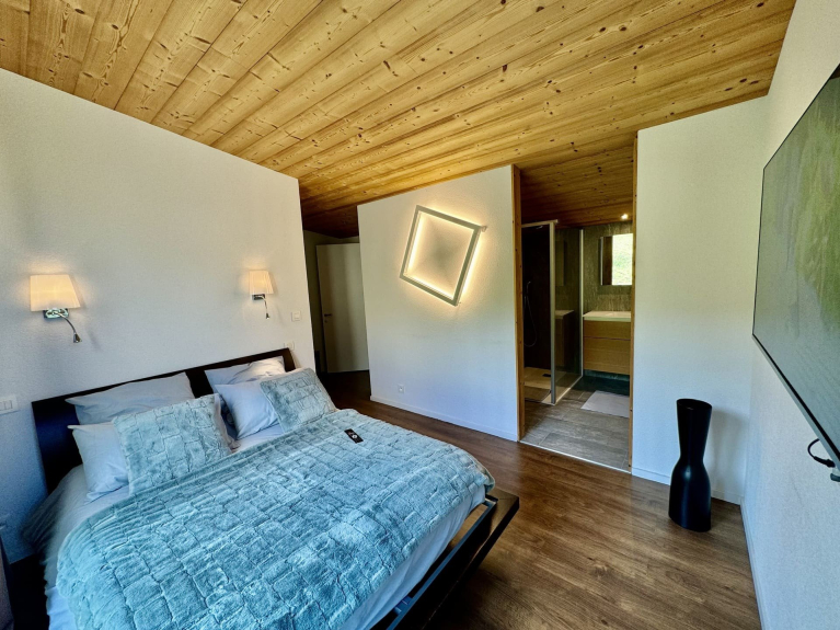 Come and discover this semi-detached architect-designed chalet in a modern, uncluttered style, ideally located on the heights of the village of Châtel, in the heart of the Portes du Soleil ski area. Its contemporary architecture and large bay windows offer an exceptional panoramic view of the mountains and village, for a unique stay between nature and serenity.