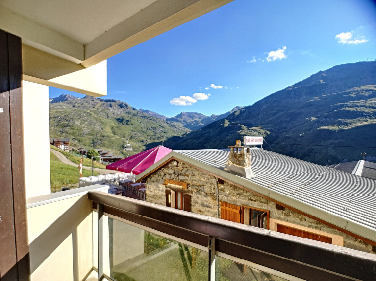 27m² one-bedroom apartment located in residence les Origanes n°123 in the Reberty 1850 district, south-facing balcony overlooking the Masse slope and Lac du Lou.