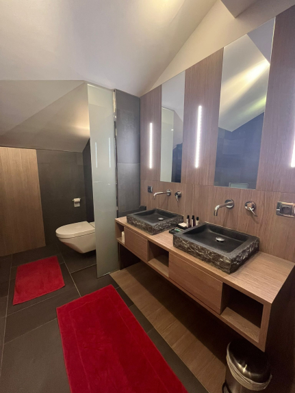 Spacious, light-filled rooms boast a sleek, comfortable style, with a sitting area, free Wi-Fi and, in some cases, a private terrace with breathtaking views of the peaks. The modern bathrooms all feature walk-in showers.
