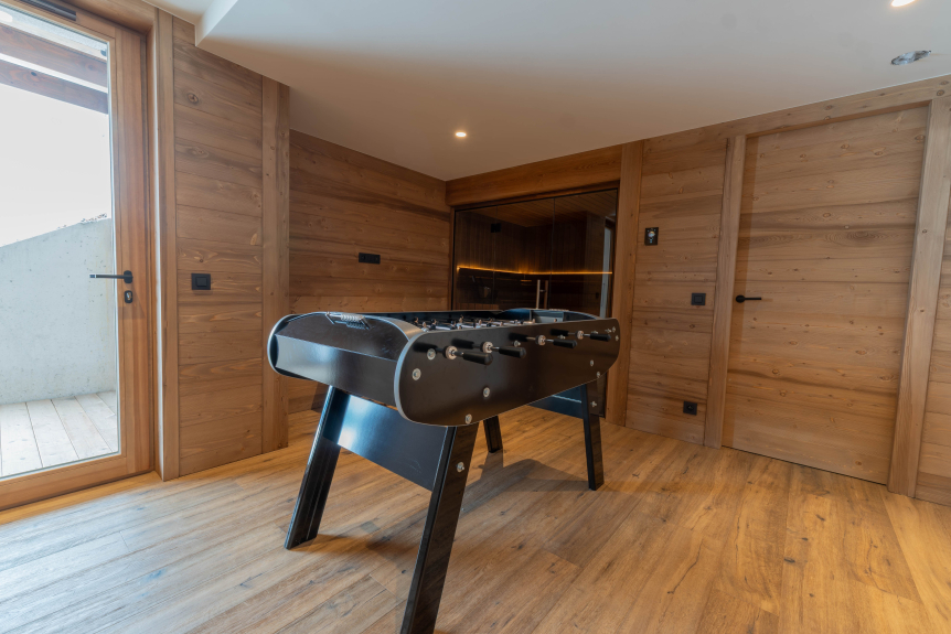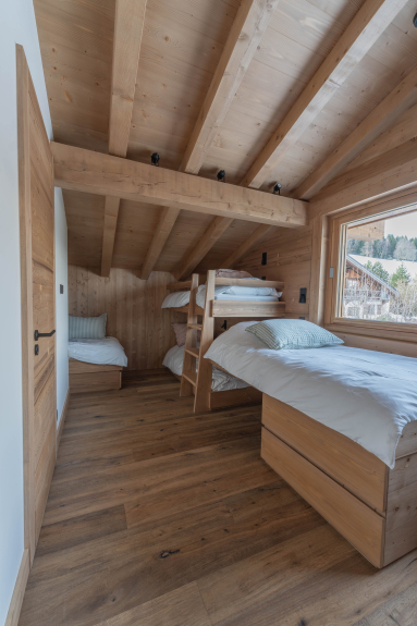 The chalet is harmoniously arranged over three levels, and can accommodate up to 12 guests in absolute comfort. Its four double bedrooms, dedicated children's dormitory and multiple private bathrooms guarantee a perfect balance between conviviality and intimacy for a memorable stay.