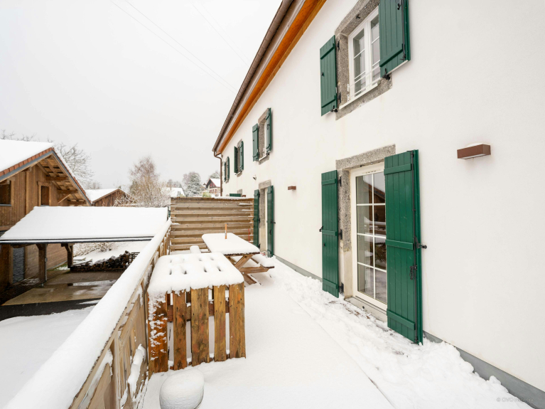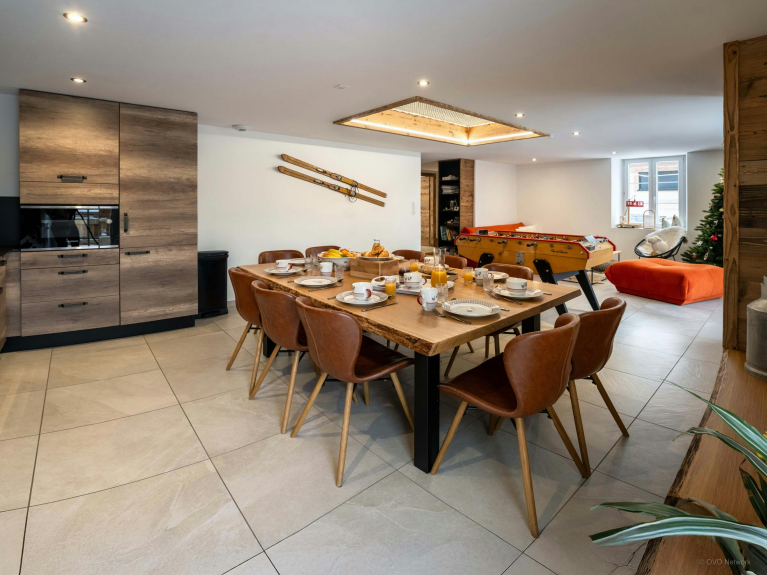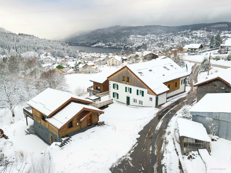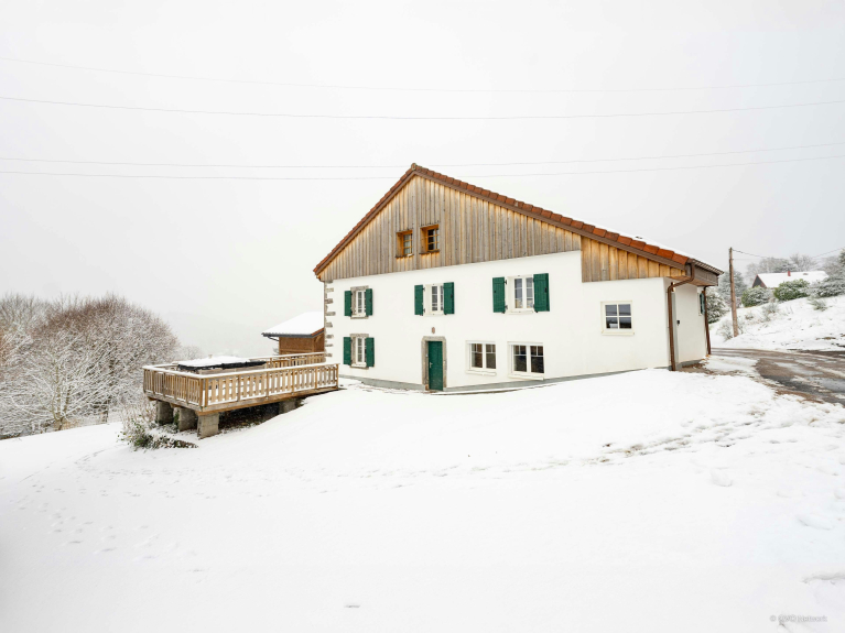 In the living room, the fireplace warms up evenings spent around the TV, table soccer or a game of darts. The room opens onto a terrace where you can enjoy the Vosges air from an outdoor Jacuzzi, a real pleasure after a day of activities. Nearby, the sauna extends this wellness interlude.