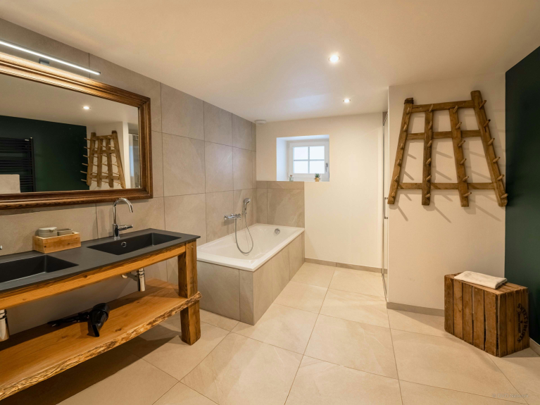 La Ferme Géromoise has four bedrooms, providing comfortable space for everyone. Although there are few bathrooms on the property, they are well distributed over the two floors. The first floor bedroom has its own bathroom with shower and bathtub.
