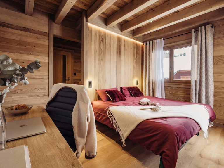 The five bedrooms at Chalet Alpage du Bettex are extremely comfortable, especially the master suite on the second floor, with its dressing room, private shower room, study and direct access to the balcony. The other bedrooms also benefit from beautiful views over the Alpine landscape.