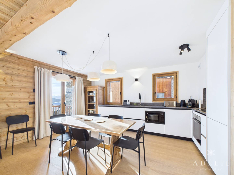 Ideally located in the LA FERME D'ELISA chalet, built in 2001 in keeping with Savoyard tradition, with ski-in/ski-out access at the foot of the chalet and 300 metres from shops. Come and spend your holiday in this splendid 80m² apartment with 3 bedrooms for 8 people. 2nd floor without lift. Wi-Fi
