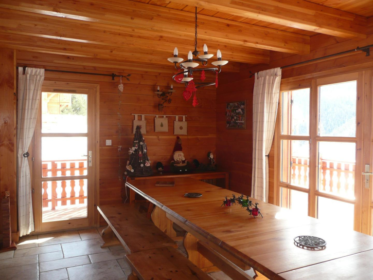 In a recent wooden CHALET from 2004, up to 12 beds, enjoy a duplex apartment 3 minutes from the slopes and the village centre.