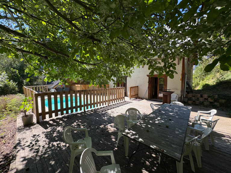 The chalet 'Le Noyer' welcomes you to Venosc in a calm and warm atmosphere, with a wooden interior decorated with care, on the edge of the woods. A panoramic terrace facing south-east with a private heated and covered swimming pool, view of the waterfall, the Roche de la Muzelle and the Vénéon valley. On the ground floor, a billiard room to relax, sauna and balneo.on the first floor, a living room with a large screen TV, internet connection, dining room, fully equipped kitchen with access to the terrace.everything is provided for baby (bed, bath, high chair).Located in Venosc, discover this pretty and authentic village of Oisans, with its paved streets, its chapels, its craftsmen, tradesmen and restaurants.you have access to the cable car which leads you to the station of the 2 Alps, access to the skiable field in winter, the summer tracks of VTT of 830 m of uneven.come to discover the summer the fabulous paths of excursion From l'Alleau, hamlet of Venosc, take the one that will lead you to the refuge of la Muzelle, where the caretaker will welcome you, in front of a magnificent landscape.in winter, our shop Venosc Sports offers preferential rates for any rental (skis, snowboards) free custody of skis.