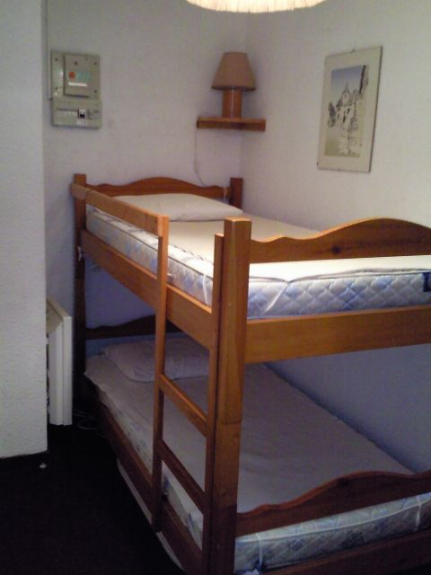 The apartment has an entrance with 2 bunk beds, a living room with a double sofa bed, a bedroom with a double bed and a kitchenette.