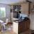 American style kitchen, fridge with freezer compartment, induction hob, microwave oven, dishwasher, tiled work surface, stainless steel sink.