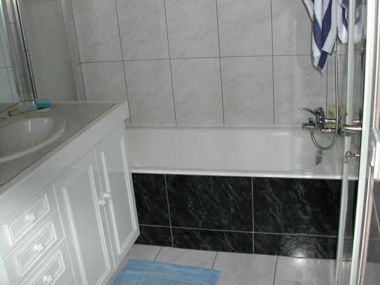 Double sliding door separating the night area, corridor with cupboards leading to 2 bedrooms and bathroom with window and separate toilet with window.