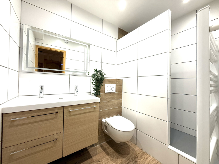 Very good quality gite in a residence located 100 m from the slopes, on a sunny hillside. Nice living space, large balcony. Outside area with swing, ping pong table and barbecue in summer.