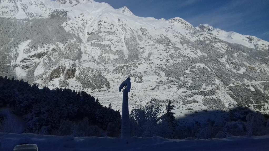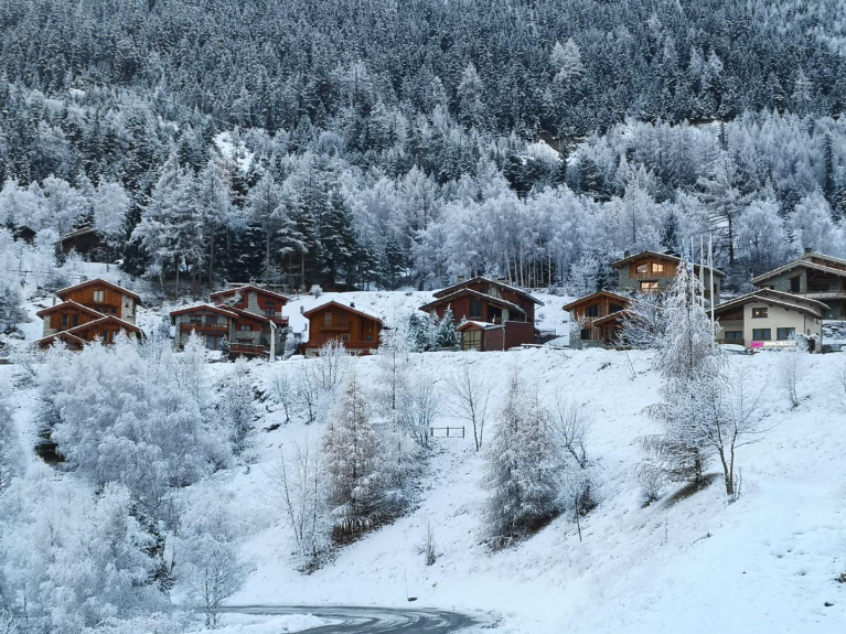 view on the park of the vanoise . Ski lifts and shops at 200m