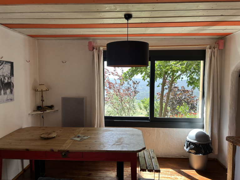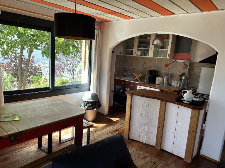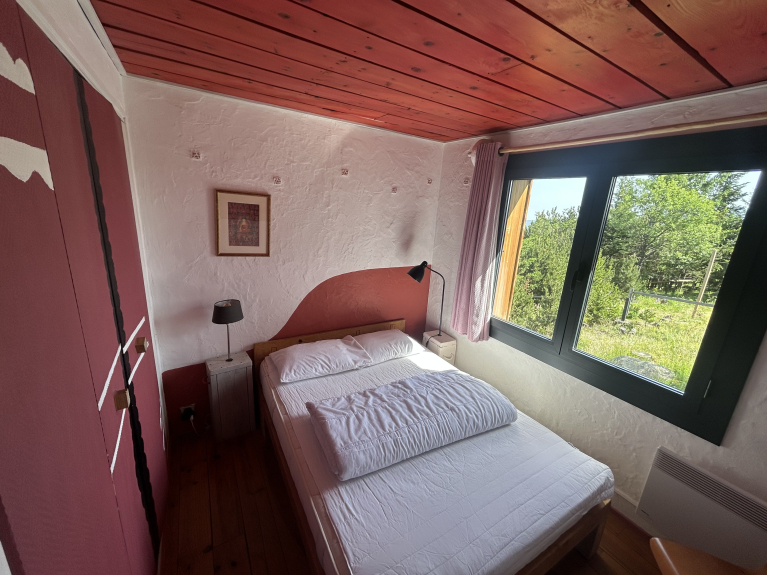 Individual chalet facing east on a wooded ridge at 1900 M altitude on a plot of 1500 m2 (highest chalet in the town) one of the most beautiful views of the village, the lake of Matemale, the plateau of Capcir and its magnificent peaks ...