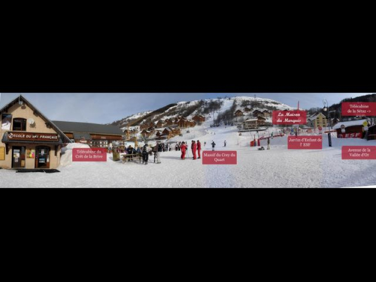The house of the Marquis is built on the snow front, between the 2 main ski lifts (TC de la Sétaz and du Crêt de la Brive), the perfect place to begin your ski day. All shops (bakery, butcher, market, sports shop, restaurants, etc.) and main equipments (leisure base, ski schools, kindergarten, day nursery, luge slope, city hall, tourism office, etc…) are located less than 10 minutes by feet.