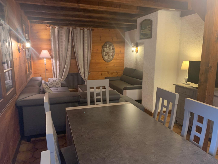 Independent chalet facing the slopes, 6/8 pers, 93 m2, 3 bedrooms + mezzanine, good comfort. TV, washing machine, dishwasher, garden