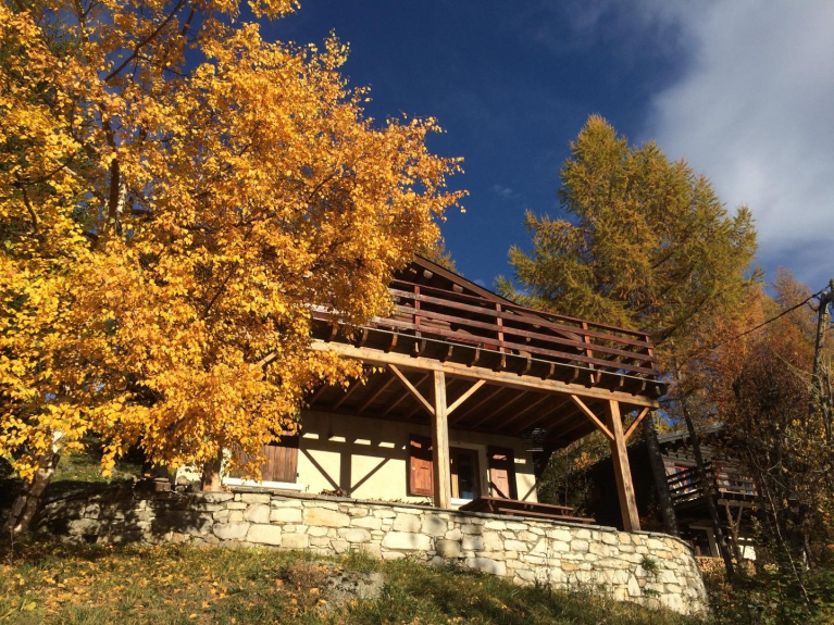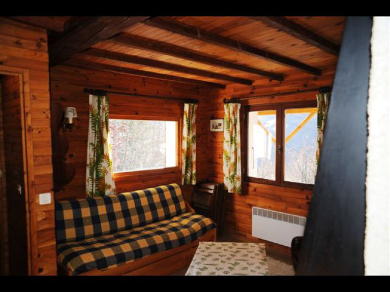 Garden level of an individual chalet, very pleasantly situated in the centre of the resort, in a quiet and very sunny setting, with a magnificent view over the whole valley and the peaks of Bellecôte.
