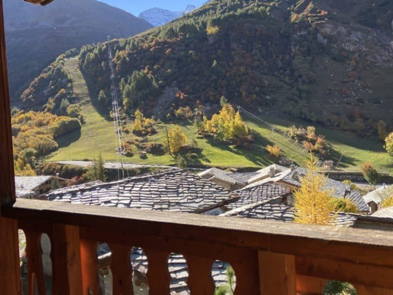 The apartment is located in a traditional stone and slate chalet near the slopes. It is south facing, with a balcony facing the slopes. For those who don't ski this apartment is very pleasant because of its sunshine all day long, it is quiet, with a clear view on the mountains and the glaciers. 2 separate bedrooms with windows, 1 bathroom, independent from the toilet, a fully equipped kitchen, with dishwasher, microwave, a living room with TV, fireplace.the apartment is very comfortable.