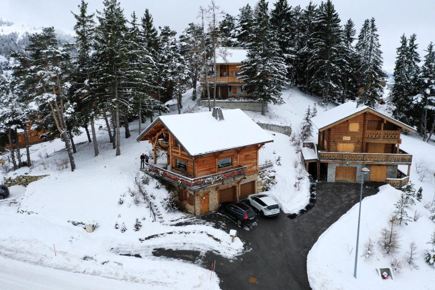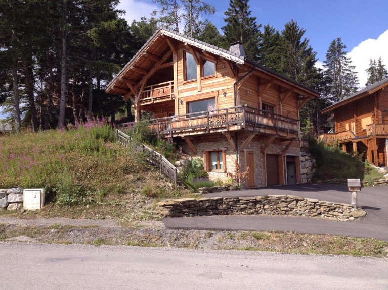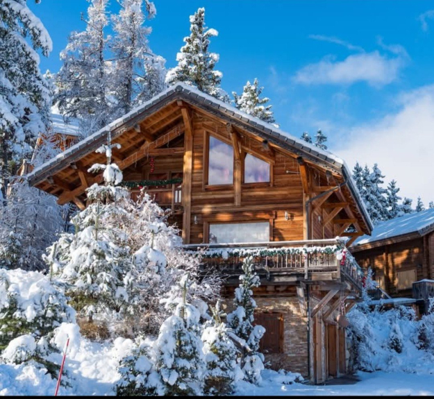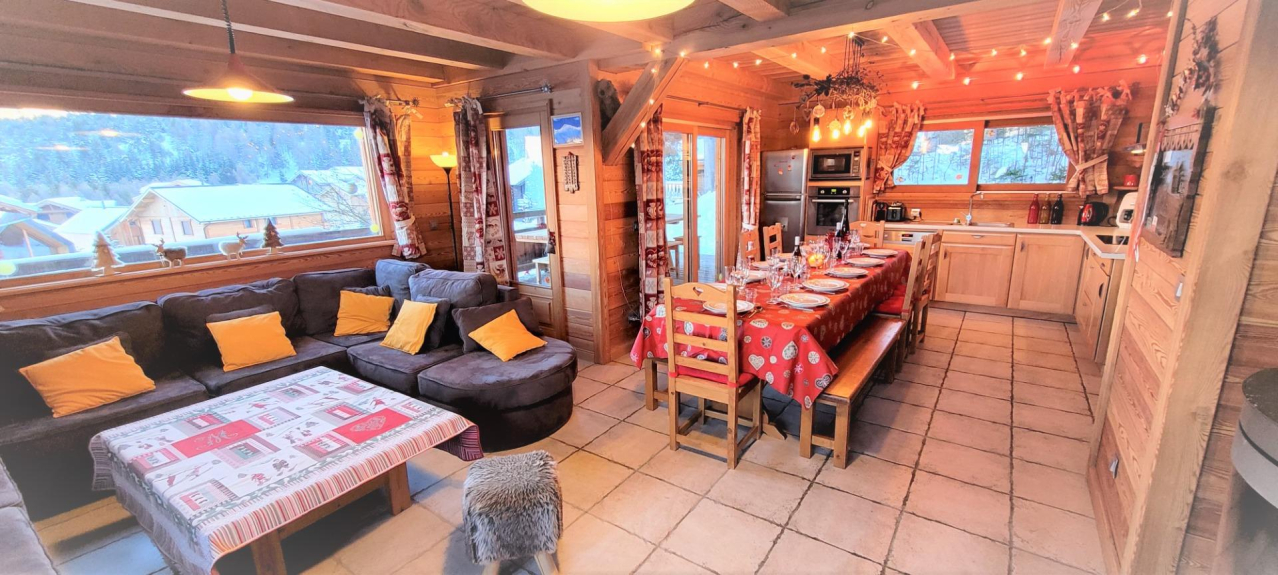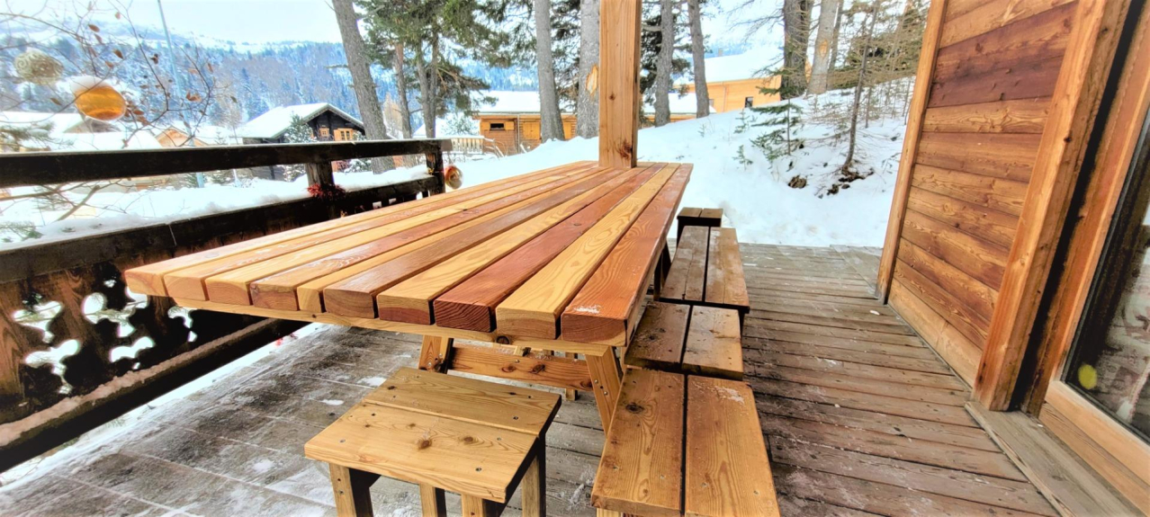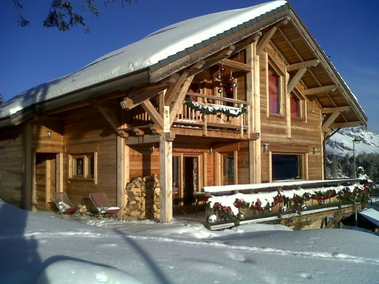 Traditional mélèze loghouse close to the ski runs & resort and shops. From ski runs and resort center (direct run back to the chalet in winter). Balcoon with amazing view .