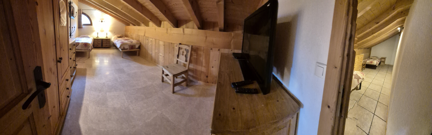 the chalet + of 380 m² :- 9 bedrooms + 6 TVs / 5 bathrooms: 3 whirlpool tubs + 2 showers and 2 ch 2: 1 shower + washbasin + 1 WC with washbasin next to the living rooms- 1 games room with billiards, table soccer, TV and PlayStation 3 + sauna for 8 personsoutside winter 1 petanque ground + table tennis, 2 barbecues + dining area with access to the lake