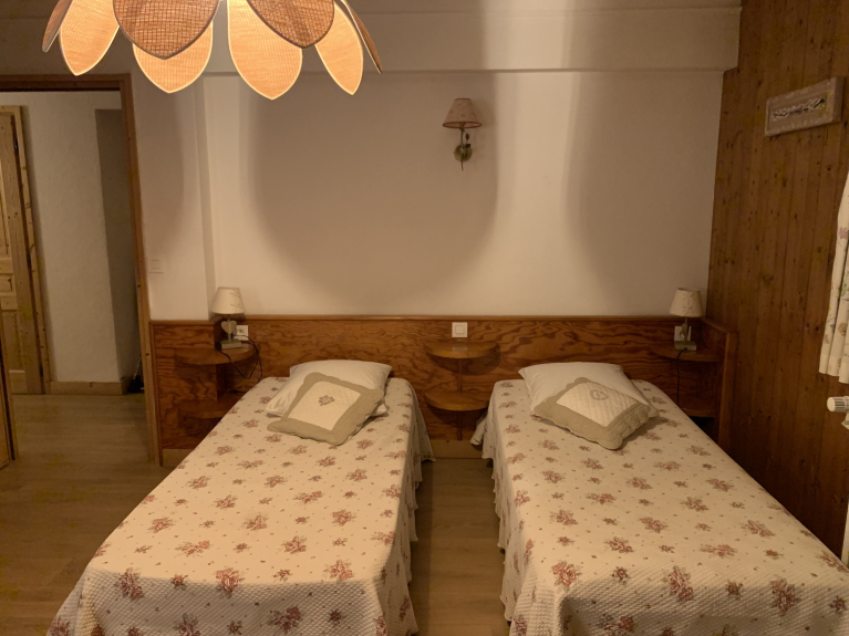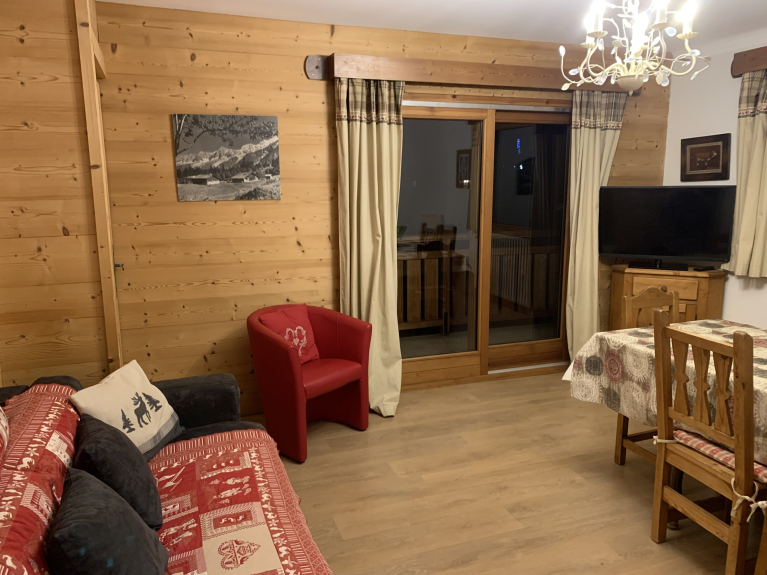 Apt. Apartamento de 3 habitaciones en chalet, situado en el centro de la estación en una zona tranquila. A 5mn de las pistas de esquí y de todos los comercios. Aparcamiento exterior, gran jardín. Posibilidad de llegar a las pistas en esquí cuando las condiciones de la nieve lo permiten. Balcón orientado al suroeste con vistas a las pistas de esquí y a las montañas.