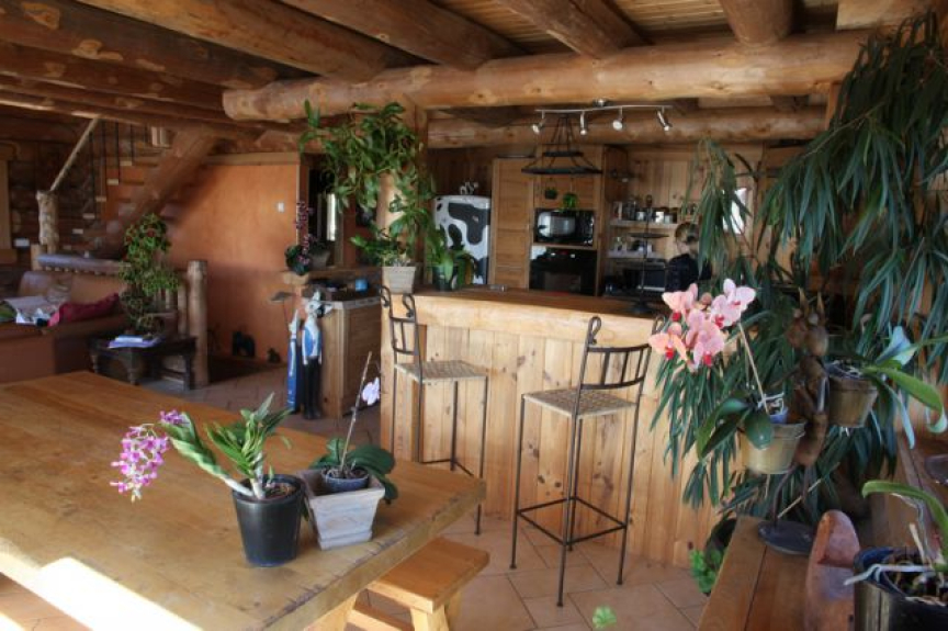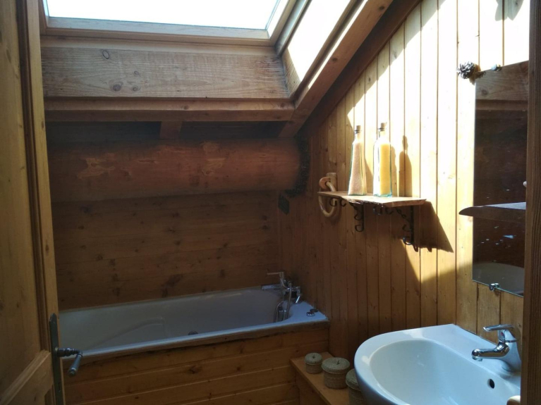Construido a partir de fustes: troncos toscos, hechos a mano. Ecológica y saludable, le acogerá en una auténtica casa diseñada para vivir en familia, con todas las comodidades que pueda desear, en lugar de una de las propiedades de alquiler formateadas que florecen en las estaciones. Los dormitorios son auténticos dormitorios, incluido un dormitorio principal con vestidor y baño privado, y el sofá cama no está en el salón, sino en una habitación aparte: la biblioteca.