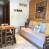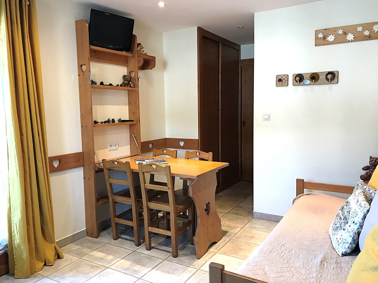 - una sala de estar con un sofá extraíble con dos colchones de 80 cm de ancho (para 1 o 2 personas) y un televisor de pantalla plana