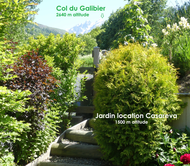 Verano: El jardín privado del piso está vallado, arbolado y equipado con mesa y bancos de jardín, tumbonas, sombrilla, barbacoa.