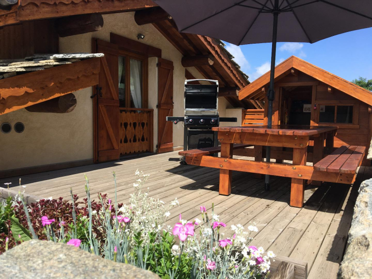 En el corazón de la localidad de Valmeinier 1500, este encantador chalet construido con materiales locales (piedra, madera y pizarra), le dará la bienvenida para agradables estancias en familia o entre amigos.